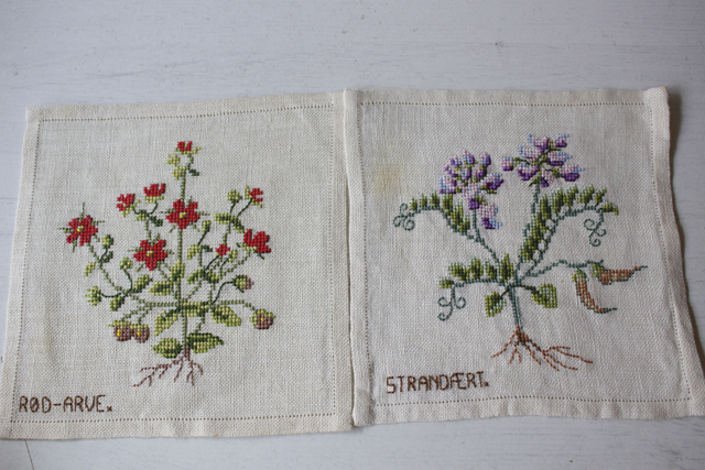 北欧ヴィンテージ/ハンドメイド/手刺繍/フラワーモチーフ/2枚セット/No.7