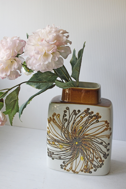 デンマーク、Royal Copenhagen(ロイヤルコペンハーゲン)のバッカシリーズの花瓶です。こちらは、Ellen Malmar(エレン・マルマー)デザインで花芯を螺旋状に描いたような可愛らしい図柄です。サイズも大きく、オブジェとして飾っても存在感があるでしょう。