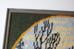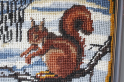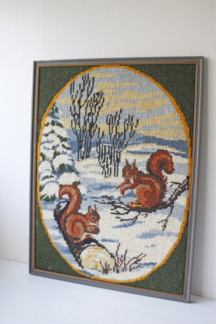 北欧ヴィンテージ/額入り刺繍/冬の森とリス
