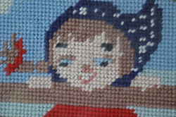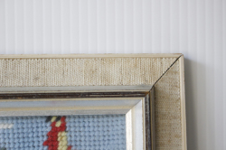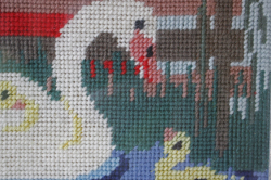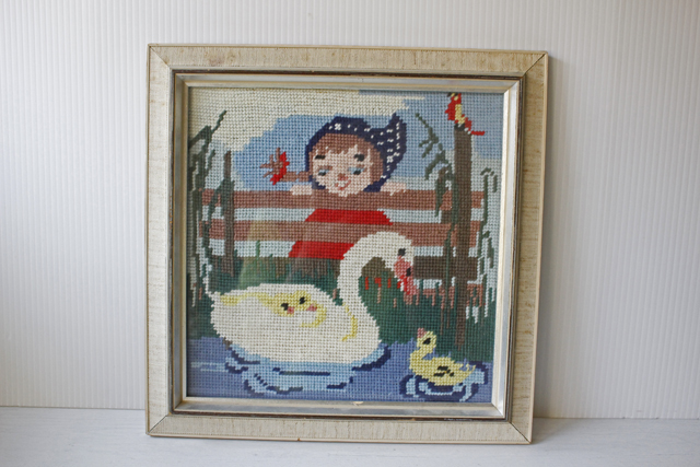 北欧ヴィンテージ/額入り刺繍/白鳥の親子と女の子