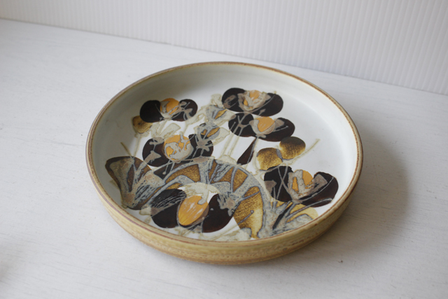 デンマーク、Alminia/Royal Copenhagen(ロイヤルコペンハーゲン)のテネラシリーズの丸皿です。こちらは、Ellen Malmar(エレン・マルマー)デザインで可憐なお花が描かれていますが、落ち着いたブラウン、ベージュ、クリームカラーのコンビネーションが素敵です。