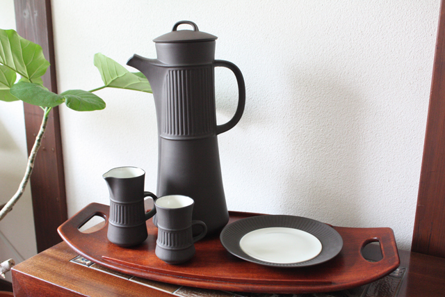 デンマーク、Jens.H.Quistgaard(イェンス・クイストゴー)デザインFlame Stone(フレームストーン)シリーズのコーヒーポットです。フレームストーンは、1957年にDANSKより発表されました。独創的なフォルム、味わい深いマットな質感と内側の青みがかかった白とのコントラストが素敵です。クイストゴー本人もアトリエ兼自宅で愛用していたことでも有名です。当店初入荷の市場でも見かけないレアアイテムです。