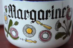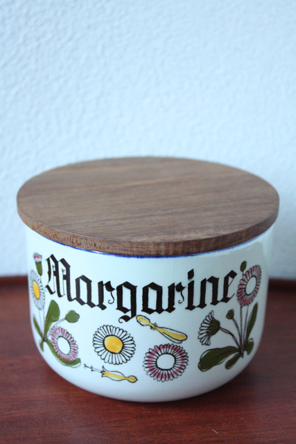 デンマーク、Knabstrup社のハーブポットです。ハンドペイントでハーブの名前と図柄が描かれています。レトロ感溢れるキッチン雑貨としてオススメです!こちらは大きい目のサイズで、お菓子や小物入れとしてお使いいただくとよいでしょう。