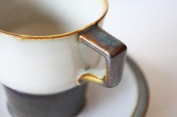 デンマーク、Jens.H.Quistgaard(イェンス・クイストゴー)デザインTEMAシリーズのデミカップ&ソーサーです。柔らかなグレーに、ブルーやブラウンが混ざり合った釉薬の掛かり具合が幻想的な雰囲気が魅力です。個々に釉薬のかかり方に個性があり、ヴィンテージならではの味わいをお楽しみください。デミカップは市場でもなかなか見かけない大変レアなサイズになります。コレクションにいかがでしょうか。