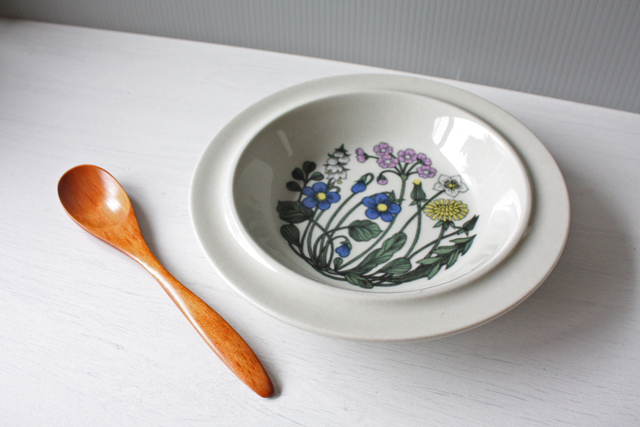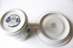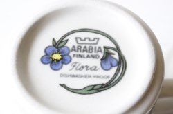フィンランド、ARABIAのフローラシリーズのモーニングカップ&ソーサーです。パステル画の様な柔らかなタッチの野花を集めたフラワーブーケットのようで、可憐な印象です。大き目サイズのカップですのでたっぷりカフェオレやミルクティを楽しめますね。今回入荷分は使用感はあまりなく、コンディションにこだわる方におススメです。