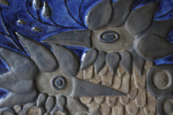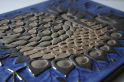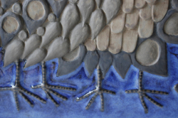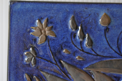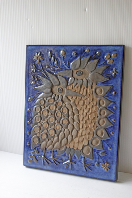 デンマーク、Aluminia/Royal Copenhagen(ロイヤルコペンハーゲン)の陶板の壁掛けです。アルミニアは1882年にロイヤルコペンハーゲンを買収しました。1969年まではアルミニアのロゴも使用されていましたが、その後ロイヤルコペンハーゲンにロゴを統一します。こちらは、バックスタンプからアルミニア時代のものであると分ります。デザイナーはBeth Breyen。カップルと思われる2羽の鳥が仲睦まじく寄り添っています。羽の部分もとても細かく細工されていて圧巻の作品となっています。こちらは、1958年からアルミニアが女性デザイナーを起用して製作していたテネラのシリーズになります。市場でもなかなか見かけない珍しいものになります。