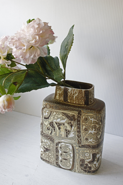 デンマーク、Royal Copenhagen(ロイヤルコペンハーゲン)のバッカシリーズの花瓶です。こちらは、Nils Thorsson(ニルス・トーソン)デザイでシックな色合いの中にお魚とお花と幾何学模様がデザインされています。落ち着いた色合いでオブジェとしてもお楽しみいただけるでしょう。