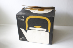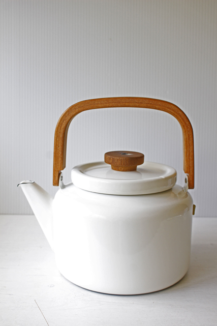フィンランド、アラビア/フィネル社をのホーロー製ケトルです。デザイナーは、かもめ食堂で使われた24thシリーズも手掛けたHeikki Orvolaです。シンプルなデザインにチークの持ち手が、北欧らしい素敵な雰囲気です。今回入荷分は未使用品でコンディションにこだわる方におススメです。