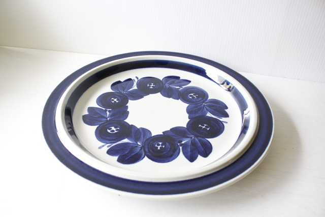 フィンランド、ARABIAの人気デザイナー、Ulla Procope(ウラ・プロコッペ)フォルムデザイン、Raija Uoshikkinen(ライヤ・ウォシッキネン)デコレートデザインのAnemoneシリーズの大皿です。ハンドペイントでのびのびとネイビーのお花が描かれた素敵なデザインです。とても大きなサイズでお客様のおもてなしに食卓の華となってくれるでしょう。アラビア社はハンドペイントの絵付け部門を廃止しておりますので、希少なシリーズとなっています。
